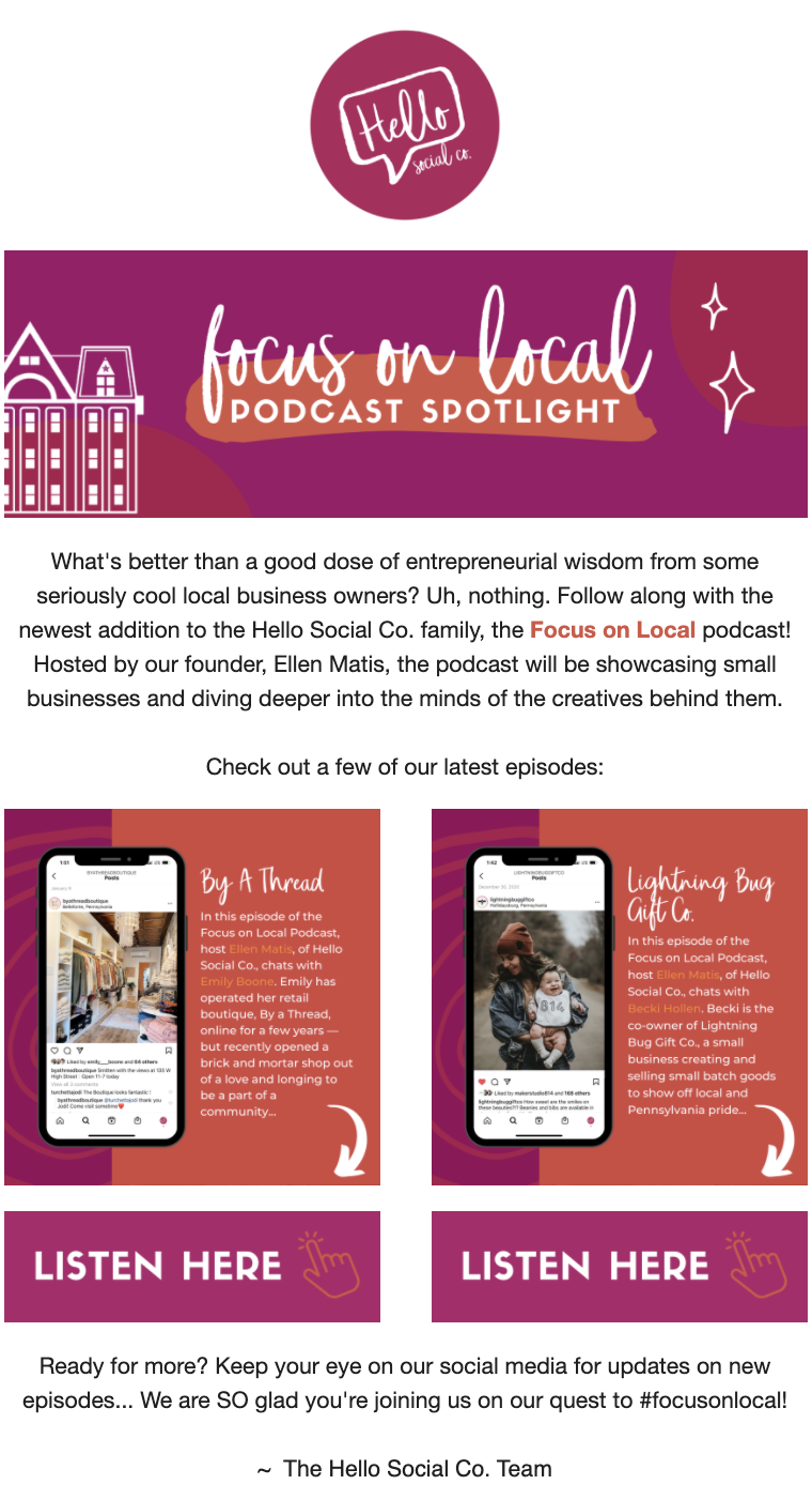 social media + marketing EMAIL CAMPAIGNS Three Little Birds Boutique Hello Social Co. Share this: Click to share on X (Opens in new window) X Click to share on Facebook (Opens in new window) Facebook Like Loading...